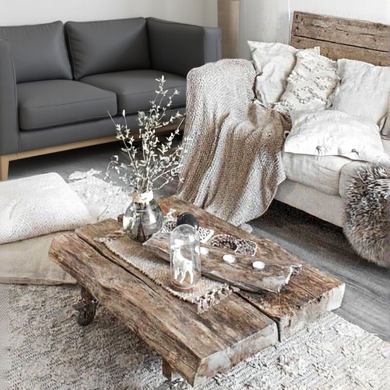 Bring a touch of organic warmth to your living space with this robust wooden coffee table, designed to serve as the heart of your home. The surface showcases rich, natural wood grain patterns, knots, and textures that make every piece uniquely inviting, perfectly complementing cozy family gatherings or quiet mornings with coffee. Its spacious rectangular top offers ample room for decorative trays, books, and daily essentials, while the sturdy base ensures reliable stability for everyday use. Whether styled in a bohemian loft or a traditional country home, this centerpiece anchors the room with timeless character and rugged elegance.